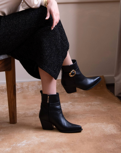 La horma estilizada y el tacón ancho equilibran confort y presencia, mientras el detalle metálico lateral aporta un acento distintivo sin perder sobriedad. Austin es versátil por esencia: se adapta con facilidad a diferentes estilos, integrándose con fluidez en un guardarropa sofisticado.