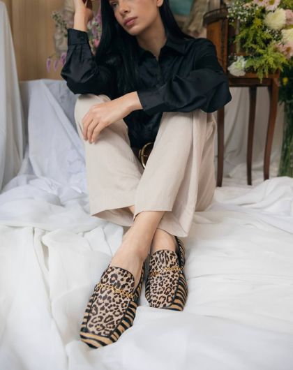 Betty es un loafer elaborado en piel con acabados de leopardo y cebra, que destaca por su ligereza y estilo único. Moderno, sofisticado y extravagante, es perfecto para la mujer que conoce las tendencias y desea marcar la diferencia con su look. Este zapato es ideal para quienes buscan estilo en su día a día, siempre luciendo con un toque distintivo y elegante. Betty atraerá todas las miradas en cualquier evento, convirtiéndose en la pieza central de tu atuendo.