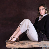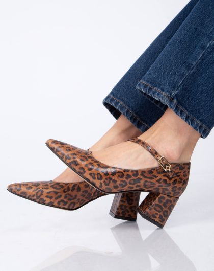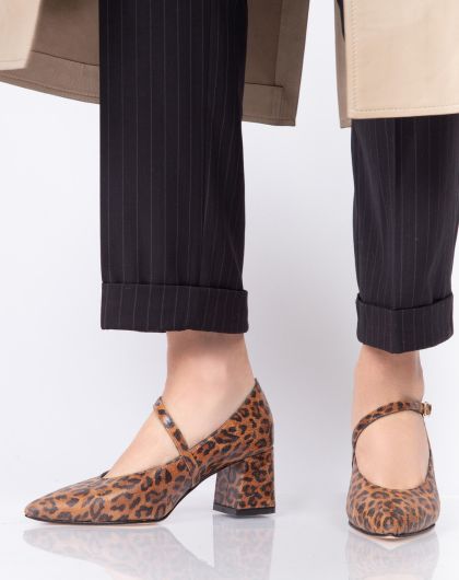 Brenta aporta un giro contemporáneo a la clásica Mary Jane. Confeccionada en piel genuina con acabado tipo animal print, su contraste de texturas y tonos crea un efecto visual que resalta con sutileza.