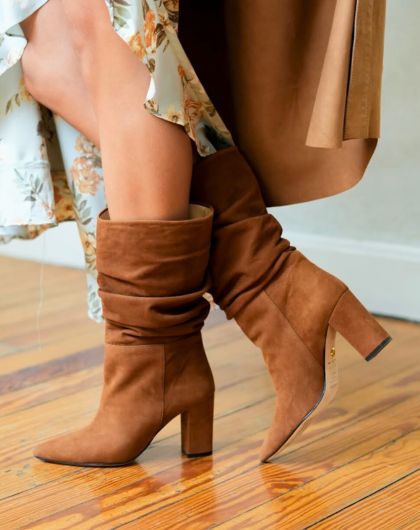 Casandra es confeccionada a mano en piel de alta calidad, su caña se pliega de forma natural, creando un drapeado fluido que aporta movimiento y carácter al diseño.