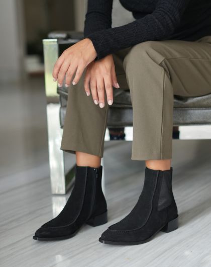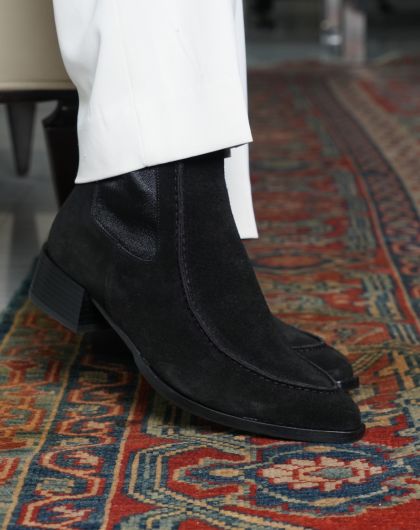 Las botas Harry son una interpretación moderna de la clásica bota Chelsea para mujer. Está confeccionada en gamuza de la más alta calidad que refleja la perfecta combinación de diseño italiano y artesanía española. Con su estilo minimalista y atemporal, esta bota se convierte en un elegante botín urbano, ideal para cualquier ocasión. Estas botas ofrecen un confort excepcional sin renunciar a la sofisticación y gamuza suave otorga una sensación de lujo al tacto. El diseño refinado y su silueta minimalista hacen de la bota Harry una pieza esencial en cualquier guardarropa, perfecta para quienes buscan un calzado versátil que combine estilo y comodidad en el día a día.