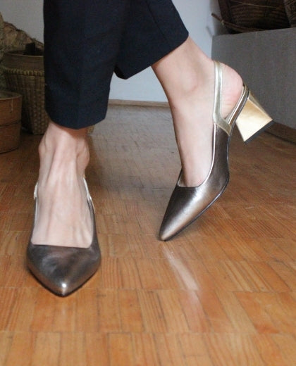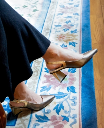 Lara es una interpretación contemporánea de la clásica zapatilla destalonada, concebida para mujeres que aprecian la estética depurada y el confort en partes iguales. Su tacón en forma de triángulo, de altura equilibrada, aporta un guiño geométrico que distingue su silueta y suma estabilidad sin sacrificar ligereza.