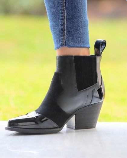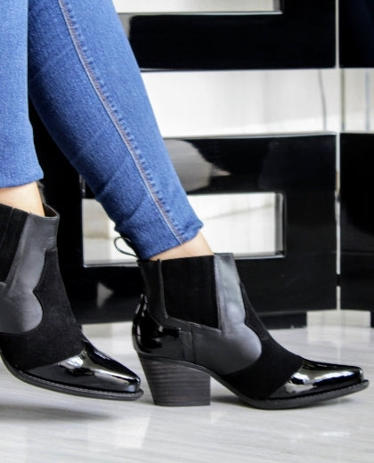Maddie tiene un diseño exclusivo en nuestra línea de botas vaqueras. Creada con tres texturas distintas en piel, creamos relieves y contrastes que acentúan las siluetas de cada pieza. Su punta con forma de bigotera en diamante, su empeine con diseño de medallón y las aplicaciones de piel sobre los resortes de los costados le dan un diseño ultra-chic y toda la calidad de manufactura. Su suela lleva un tacón forrado de vaqueta natural, acentuando el look trendy de nuestro diseño.