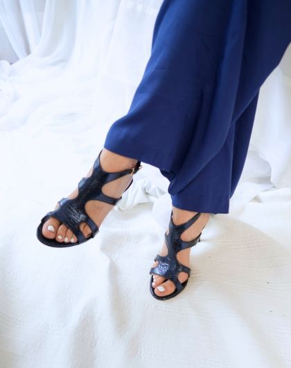 Mila es una sandalia de estilo gladiador, confeccionada con piel metálica que realza la elegancia y perfila la silueta del pie. Inspiradas en el poder histórico de las sandalias de gladiador, su diseño atemporal y moderno combina estilo y funcionalidad, adaptándose perfectamente tanto a eventos chic como a paseos urbanos. Las correas, que envuelven suavemente los pies, alargan la silueta y complementan a la perfección las faldas, creando un look bohemio y sofisticado. Con su elegancia y comodidad, Mila es la pieza clave para construir un atuendo que te haga sentir como una diosa en todos los sentidos.