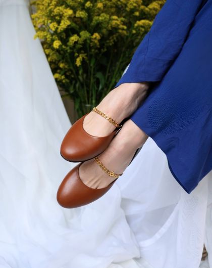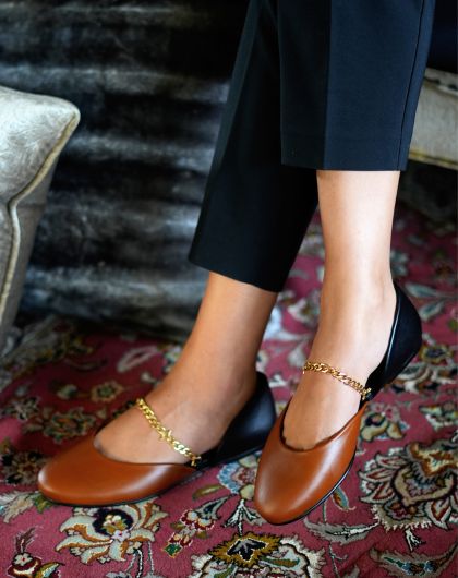 Naomi es una bailarina que equilibra sencillez y distinción en una silueta depurada. Su diseño bicolor en piel resalta por el contraste armónico y por el delicado detalle de pulsera, que abraza el empeine con sutileza.