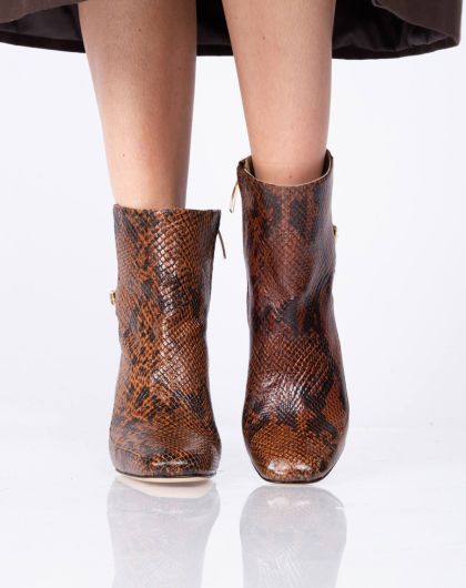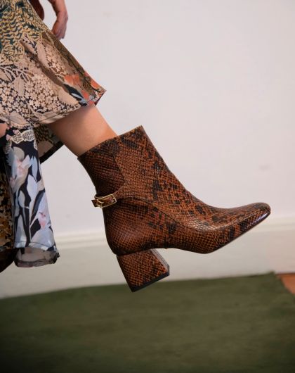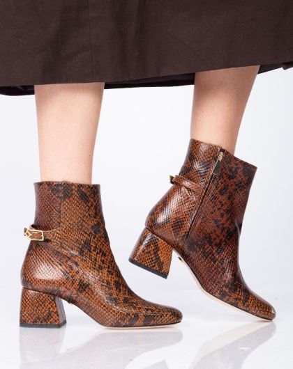 Su tacón de bloque asegura estabilidad y confort, permitiendo llevarlo durante todo el día sin comprometer el estilo. La caña envolvente abraza el tobillo con líneas limpias, logrando una presencia refinada que se adapta con facilidad a diferentes conjuntos.