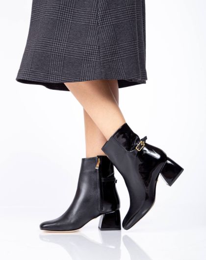 Su tacón de bloque asegura estabilidad y confort, permitiendo llevarlo durante todo el día sin comprometer el estilo. La caña envolvente abraza el tobillo con líneas limpias, logrando una presencia refinada que se adapta con facilidad a diferentes conjuntos.
