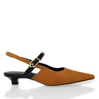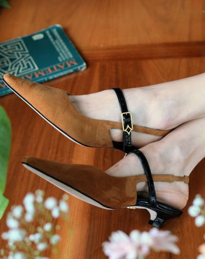 Confeccionada a mano en piel, ofrece un ajuste cómodo y estable que acompaña el movimiento con naturalidad. Su tacón bajo estiliza la figura de manera sutil, aportando presencia sin comprometer la comodidad.