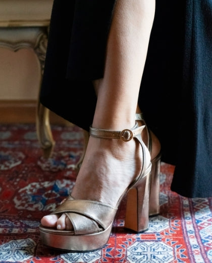 Venus combina tiras amplias que abrazan el pie con suavidad y seguridad, creando un ajuste cómodo y elegante. La pulsera en el tobillo añade estabilidad, equilibrando cada paso con confianza.