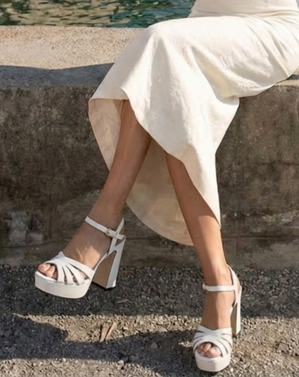 Allegra es la sandalia plataforma que será la favorita de la temporada, elevando tu estilo a nuevas alturas. Con un diseño exclusivo, la parte delantera presenta un juego de tiras en una sola pieza que crea una ilusión óptica fascinante, garantizando que este calzado no pase desapercibido. Su tacón de bloque no solo es tendencia, sino que te brinda la estabilidad que necesitas para caminar con confianza.