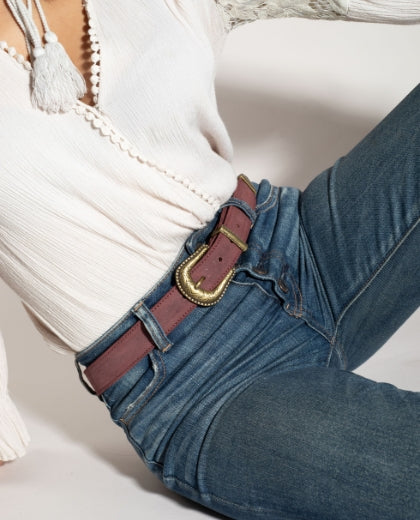 Our vintage-style belt, created in soft leather textures, makes Anna a unique detail. Its set of hardware with an aged finish accompanies a slim silhouette, making it ideal to wear with jeans or at the waist with flowing dresses. Feminine and boho-chic, it is a belt that will elevate any of your looks.