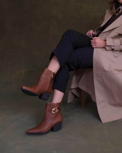 La horma estilizada y el tacón ancho equilibran confort y presencia, mientras el detalle metálico lateral aporta un acento distintivo sin perder sobriedad. Austin es versátil por esencia: se adapta con facilidad a diferentes estilos, integrándose con fluidez en un guardarropa sofisticado.