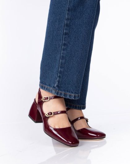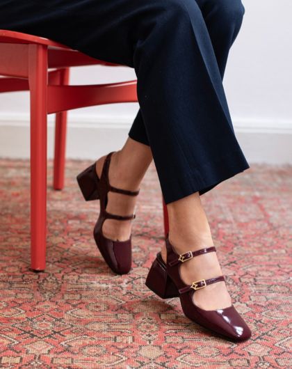Alessia redefine la clásica silueta Mary Jane con un diseño que equilibra delicadeza y carácter. Sus dos pulseras se ajustan con precisión sobre el empeine, mientras el acabado en charol aporta un brillo sutil que realza su presencia.