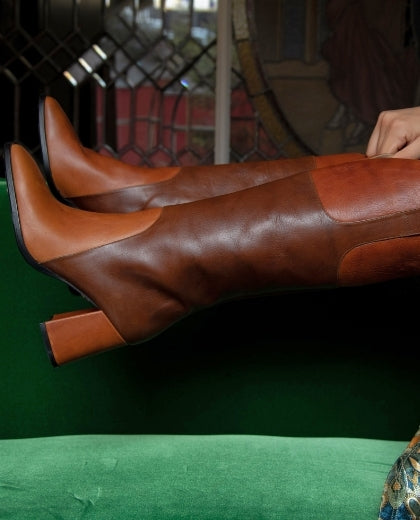 King es nuestra bota alta hasta la rodilla, diseñadas para destacar con su punta cuadrada y un exquisito mix de tonos de piel. Cada par presenta una silueta minimalista inspirada en una armadura, ofreciendo un equilibrio perfecto entre elegancia y robustez. Confeccionadas con piel de la mejor calidad, estas botas no solo son un accesorio de moda, sino también una declaración de estilo y durabilidad.